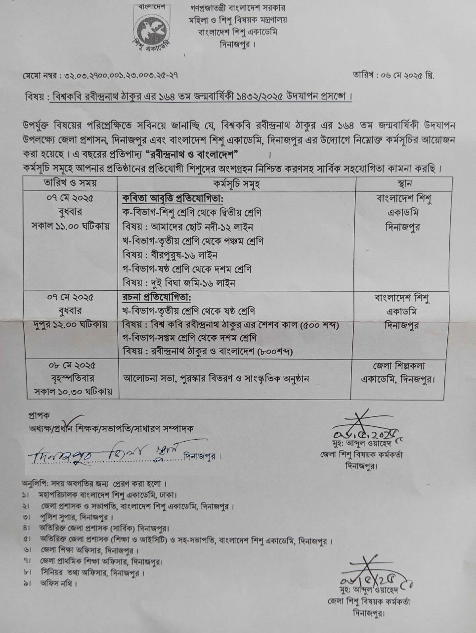 বিশ্বকবি রবীন্দ্রনাথ ঠাকুরের ১৬৪ তম জন্মবার্ষিকী ১৪৩২ উদযাপন প্রসঙ্গে।